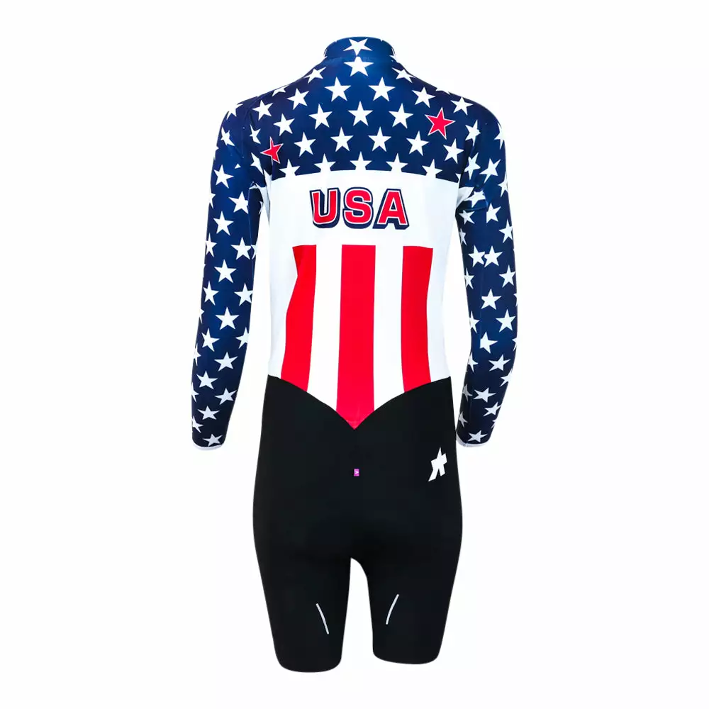 With the Team USA Cycling long-sleeve skinsuit, you will be just as stylish on the bike as the riders of Team USA Cycling.