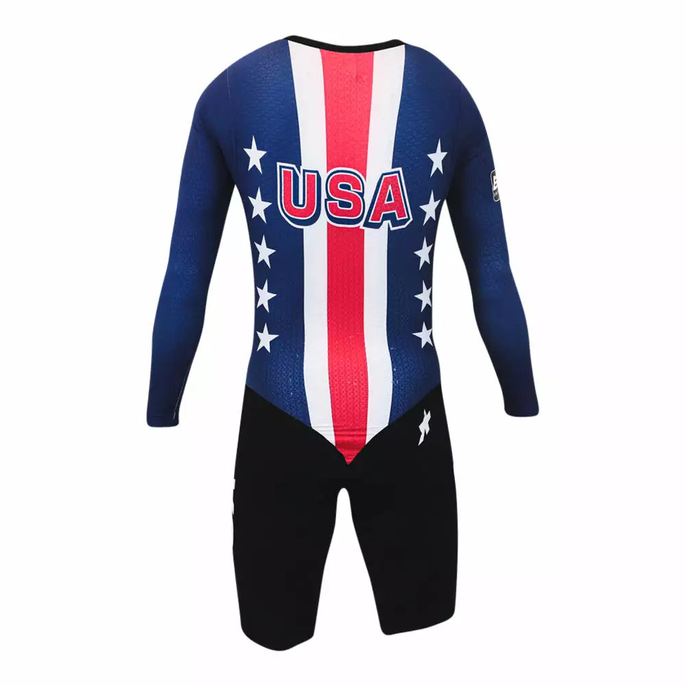 With the Team USA Cycling long-sleeve skinsuit, you will be just as stylish on the bike as the riders of Team USA Cycling.
