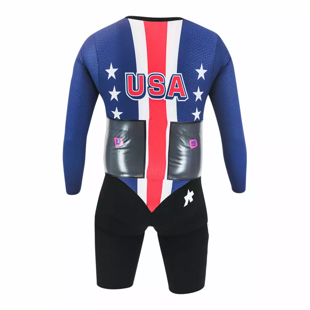 The nopinz double speedpocket on the lower back makes this long sleeve speedfire skinsuit even more special and aerodynamic.