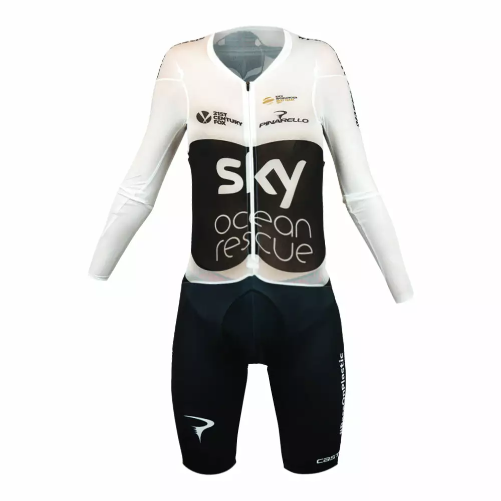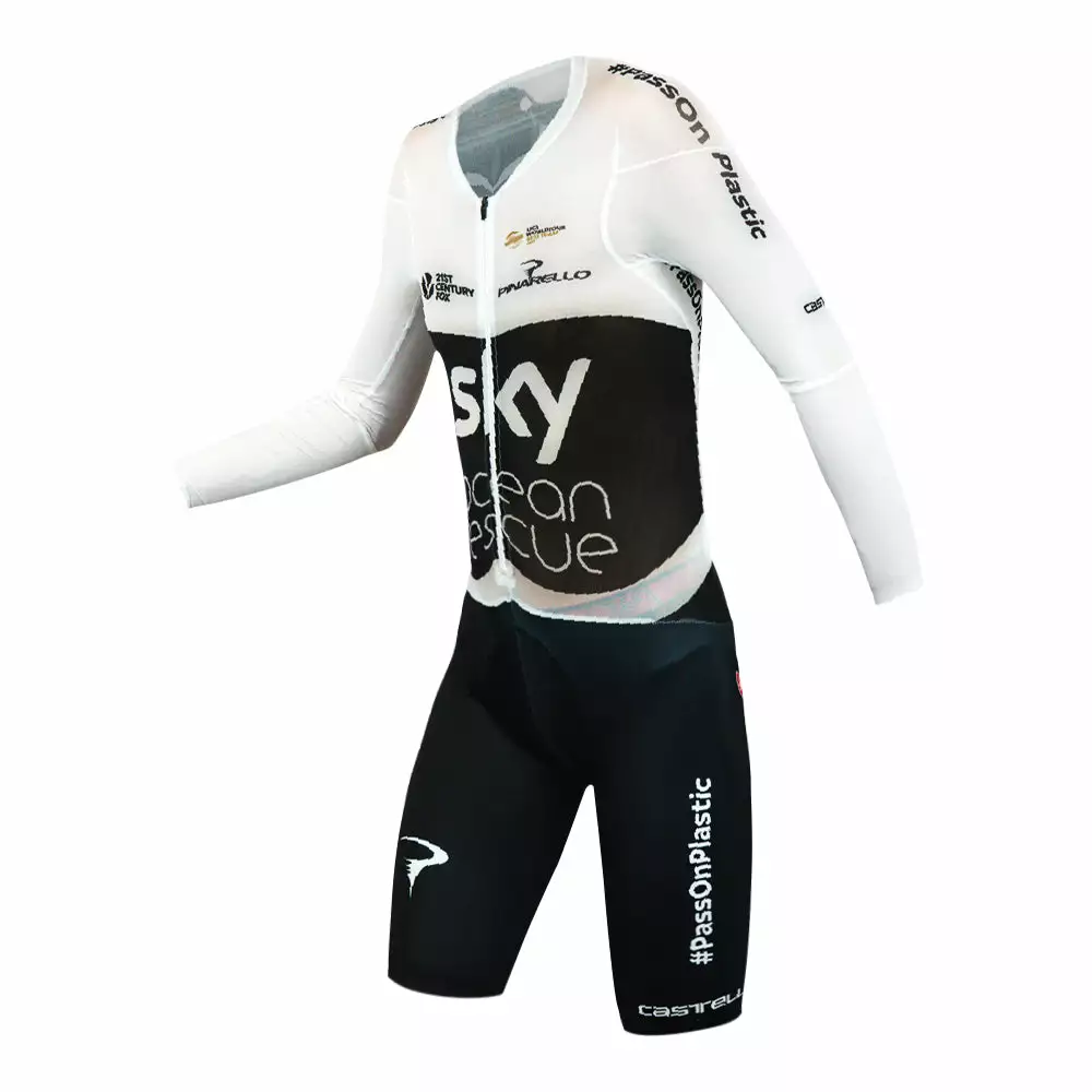 Team Sky’s new Castelli Bodypaint 4.2 Speed Suit is a marvel of aerodynamics and fabric engineering. Designed for time trials, its one of the faster puzzle pieces. This is no ordinary Lycra skinsuit. Castelli spent years perfecting it.