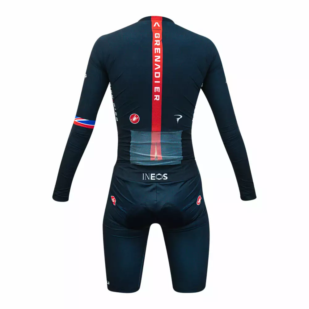 It has a complete zip on the front that makes it easy to open and close. The version comes in a variety of colours and sizes. As seen on Team Ineos Grenadiers, the suit is designed for pure speed and performance.