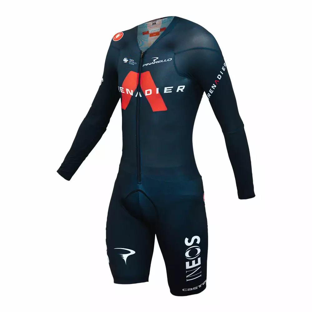 It has a complete zip on the front that makes it easy to open and close. The version comes in a variety of colours and sizes. As seen on Team Ineos Grenadiers, the suit is designed for pure speed and performance.