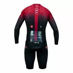 Castelli Body Paint 4.X Speed suit by Team Ineos has a great fit in the time trial position, basic materials, reduced seams, and a longer leg length with a flat non-slip finish. To keep them from climbing, long sleeves contain a thumb hole.