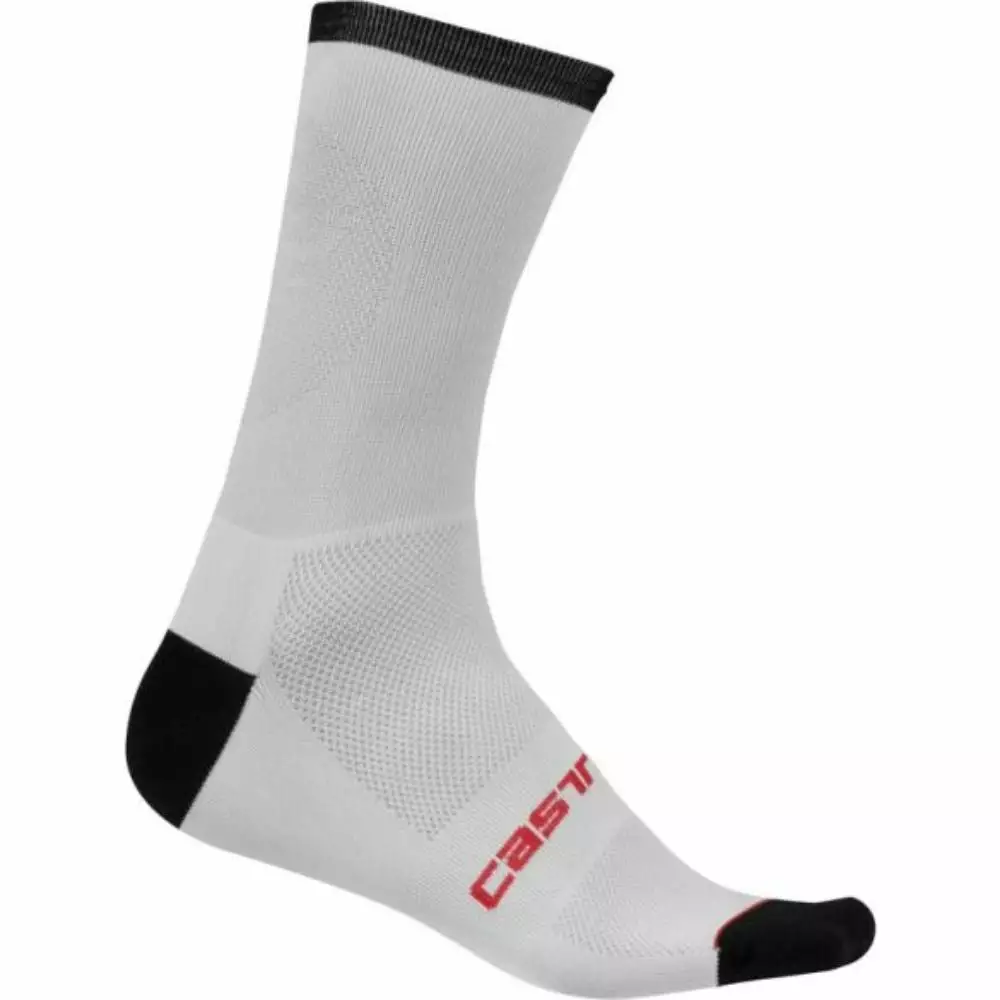 The Castelli Ruota 13 socks are made of Meryl Skinlife fabric make them ideal for hot summer days. These may be Castelli’s most breathable sock ever, featuring a mesh top and a mesh weave across the rear of the sock.