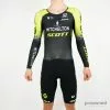 Speed suit specially made for hot conditions. The suit is made out of mesh materials to improve breathability. The fabric on the side panels is made with tiny holes in it to further optimize the breathability. The focus on breathability also results in an extremely light speed suit. The improved breathability and low weight make the suit an excellent choice for hilly races in a warm climate where weight, breathability, and aerodynamic is the key to success.