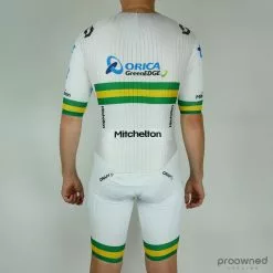 These skinsuits were made in case one of the riders became an Australian national time trial champion.