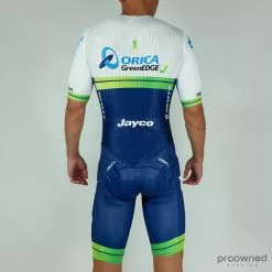It is Crafts top model, which is custom made for the World Tour Team Orica-GreenEDGE. This means that this is a very high-quality skinsuit. The material is breathable, which ensures good comfort even when the body sweats.
