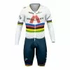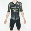 The skinsuit tight fit is made for pure speed and is made by Etxeondo. Skinsuits are specifically made for use during Time Trials, as they are designed to sit extremely tight on the body and with an absolute minimum amount of stitches, zippers and no pockets in an attempt to eliminate drag as much as absolutely possible.