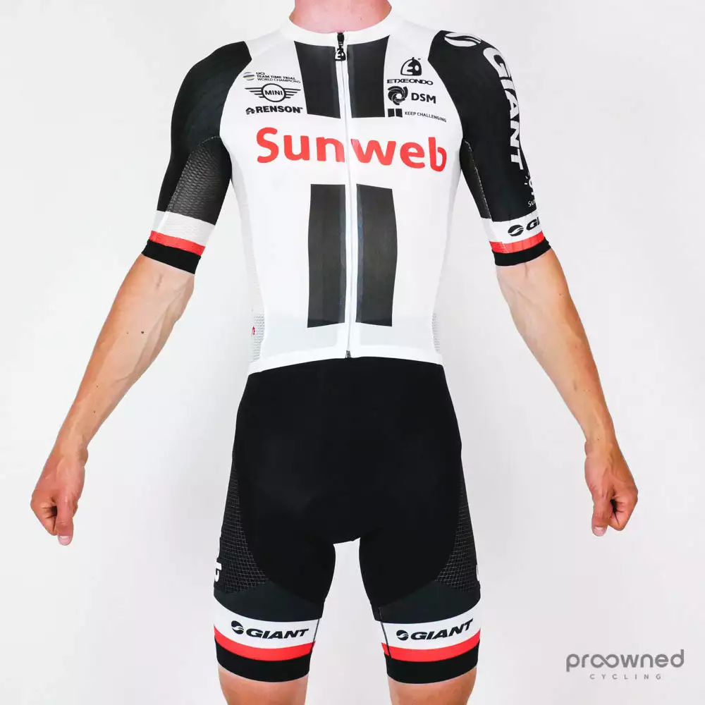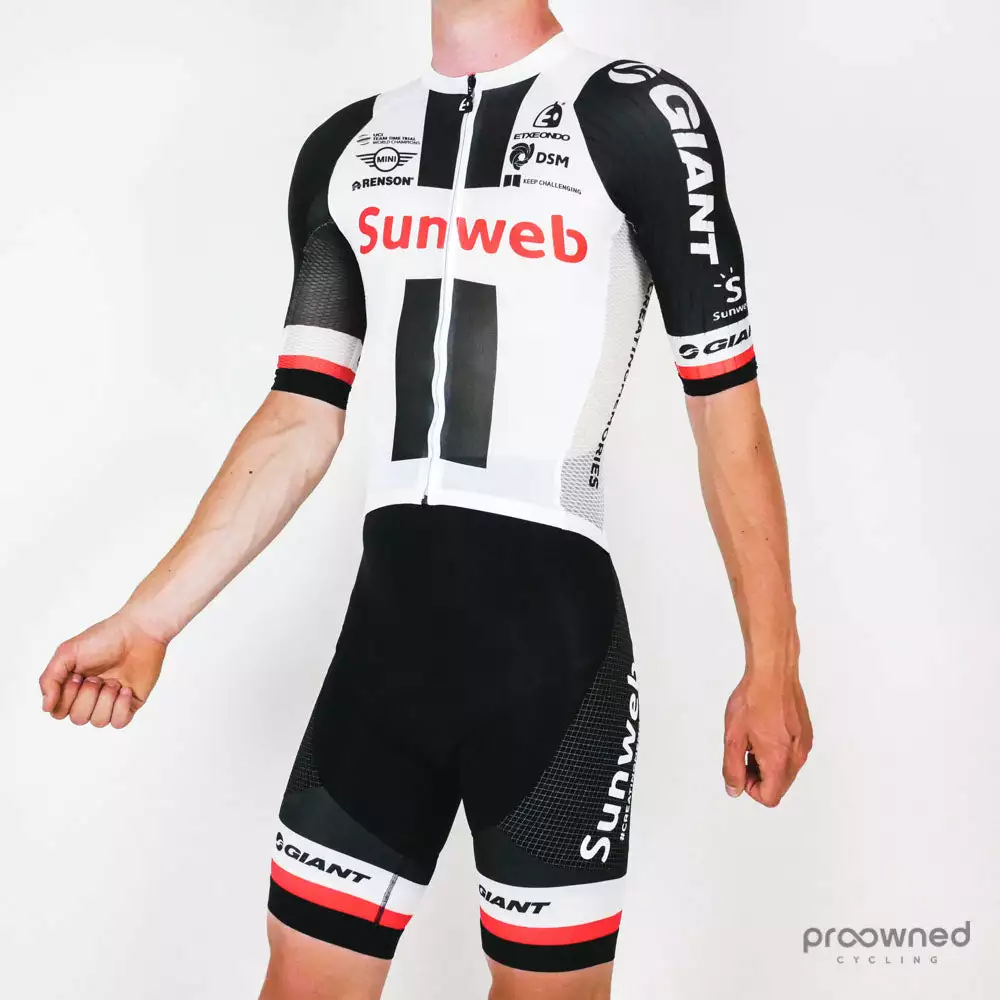 Used short sleeve skinsuit from the World Tour Team Sunweb* made for the 2018 season.