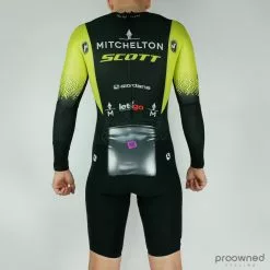 It is Giordana’s top model, which is custom made for the World Tour Team Mitchelton-Scott. This means that this is a very high-quality skinsuit. The material is breathable, which ensures good comfort even when the body sweats.