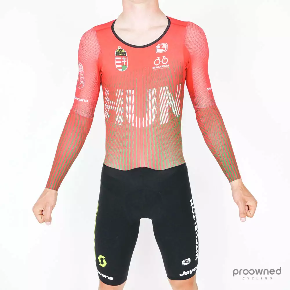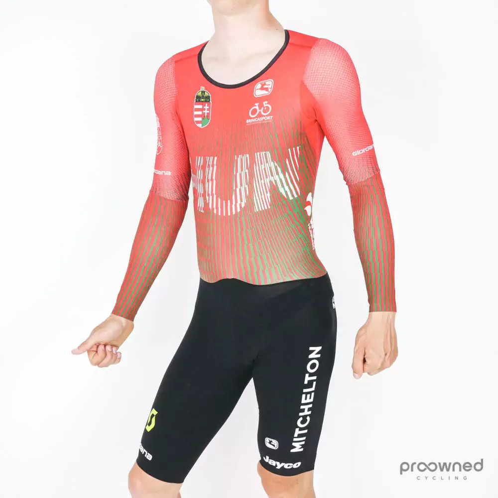 Brand new Giordana NX-G Chrono long sleeve skinsuit made for the Hungarian national team for the 2020 season.