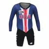 The skinsuit’s tight fit is made for speed. Skinsuits are specifically made for time trial races, designed to fit extremely tight on the body and with an absolute minimum amount of stitches, zippers, and pocket to eliminate drag as much as absolutely possible.