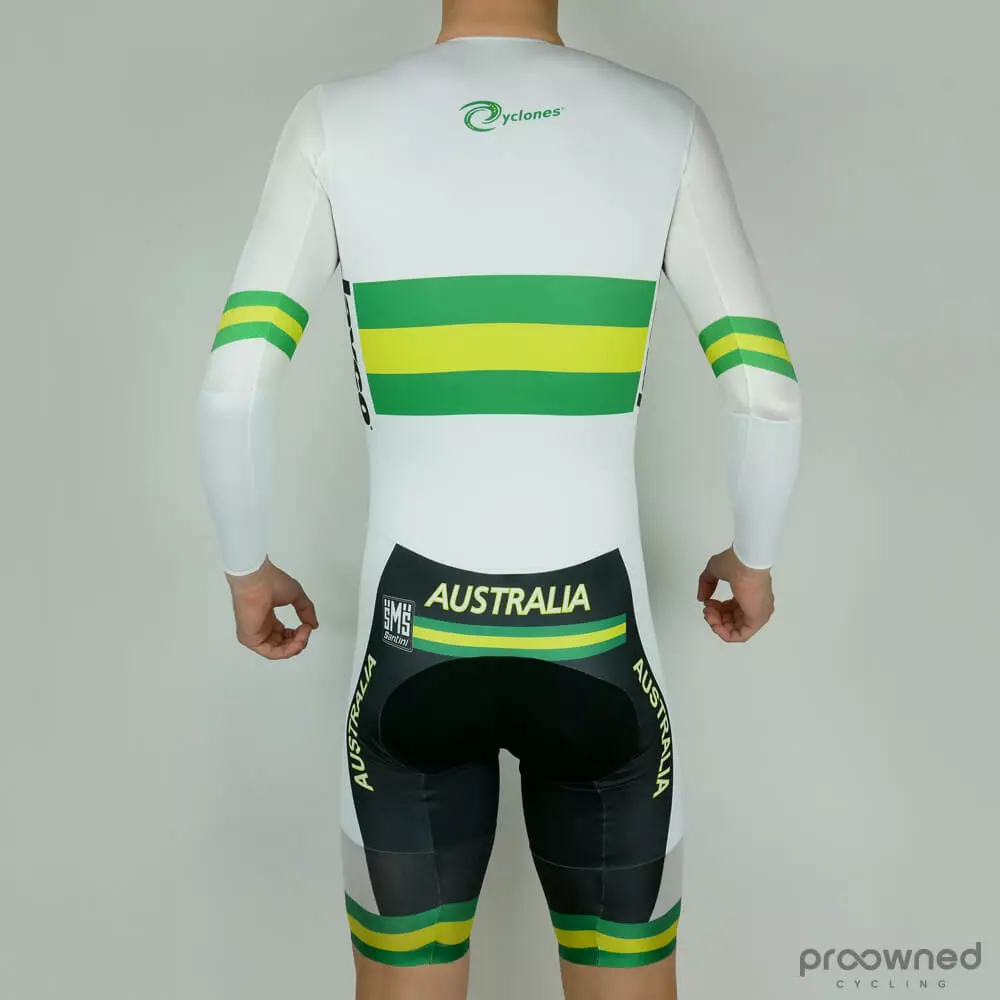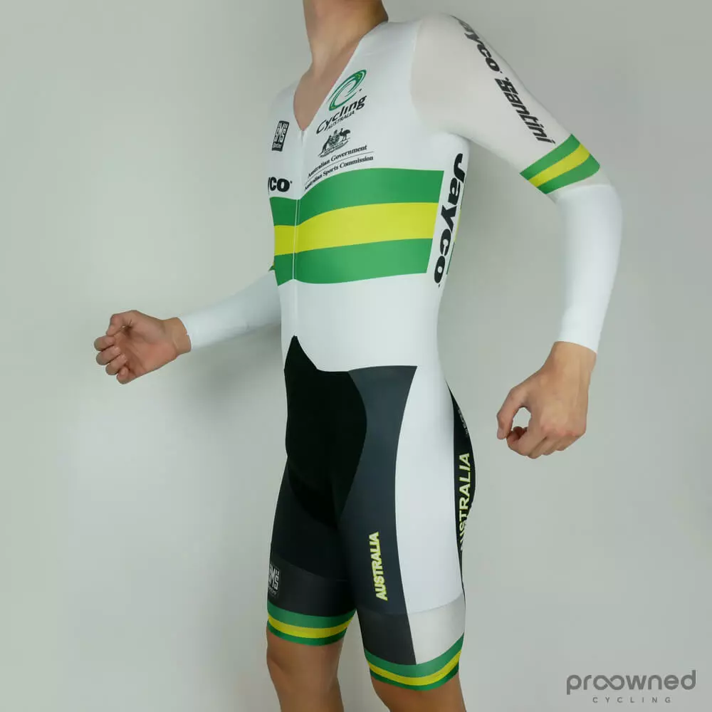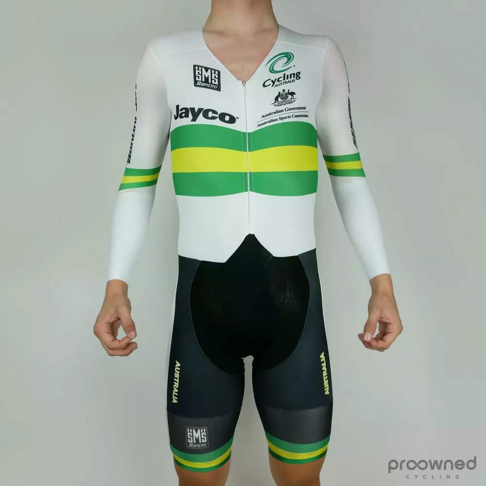 It is Santini’s top model, which is custom made for the Australian National Team. This means that this is a very high-quality skinsuit. The material is breathable, which ensures good comfort even when the body sweats.
