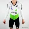 Brand new long sleeve skinsuit from Santini. This skinsuit with the Max2 pad comes directly from the Australian National Team and is made for the 2016 season. The skinsuit fits tight and perfectly on the body, giving optimized aerodynamics. At the bottom of the legs, there is an elastic silicone band, ensuring that the legs are seated perfectly.