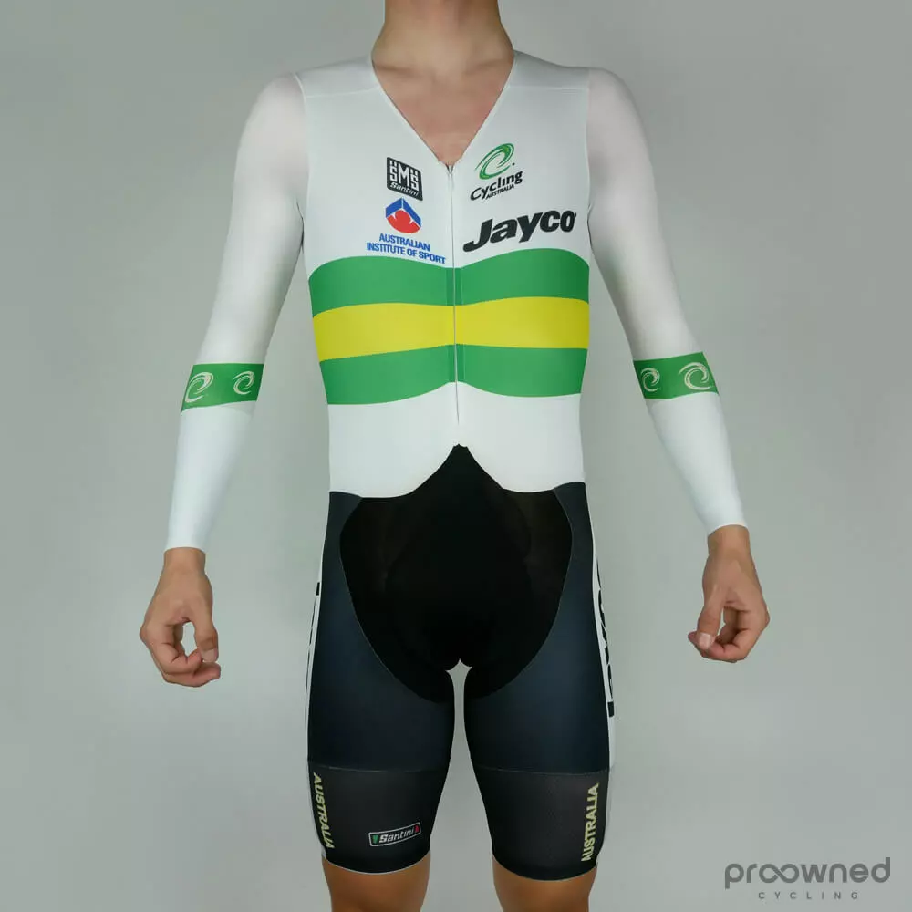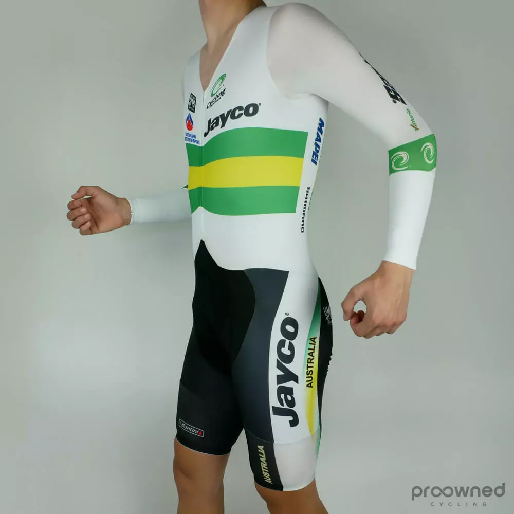 It is Santini’s top model, which is custom made for the Australian National Team. This means that this is a very high-quality skinsuit. The material is breathable, which ensures good comfort even when the body sweats.