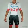 The Skinsuits tight fit is made for pure speed. The skinsuit is made by the Italian brand Santini, which is known for providing top quality clothing for all seasons. Skinsuits are specifically made for use during Time Trials, as they are designed to sit extremely tight on the body and with an absolute minimum amount of stitches, zippers and no pockets in an attempt to eliminate drag as much as absolutely possible.