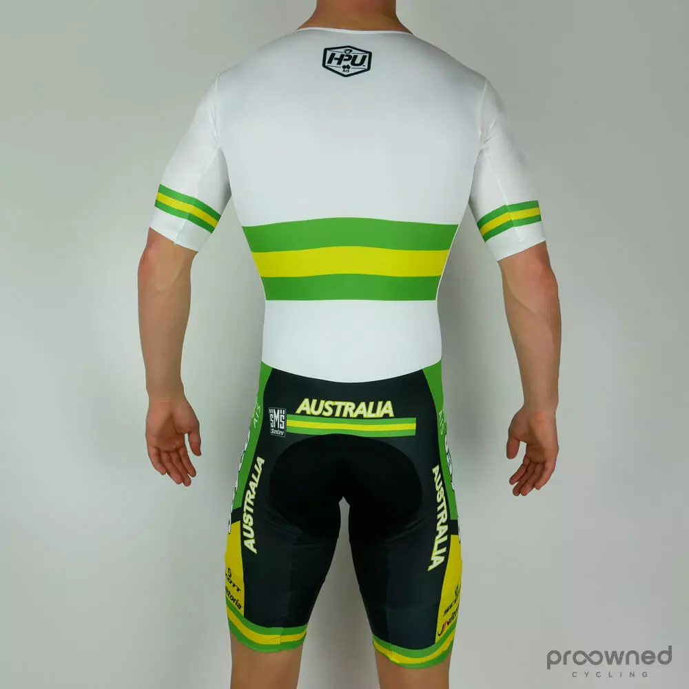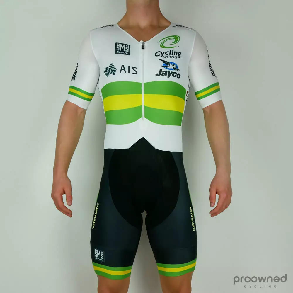 It is Santini’s top model, which is custom made for the Australian National Team. This means that this is a very high-quality skinsuit. The fabric is breathable, which ensures good comfort even when the body sweats.