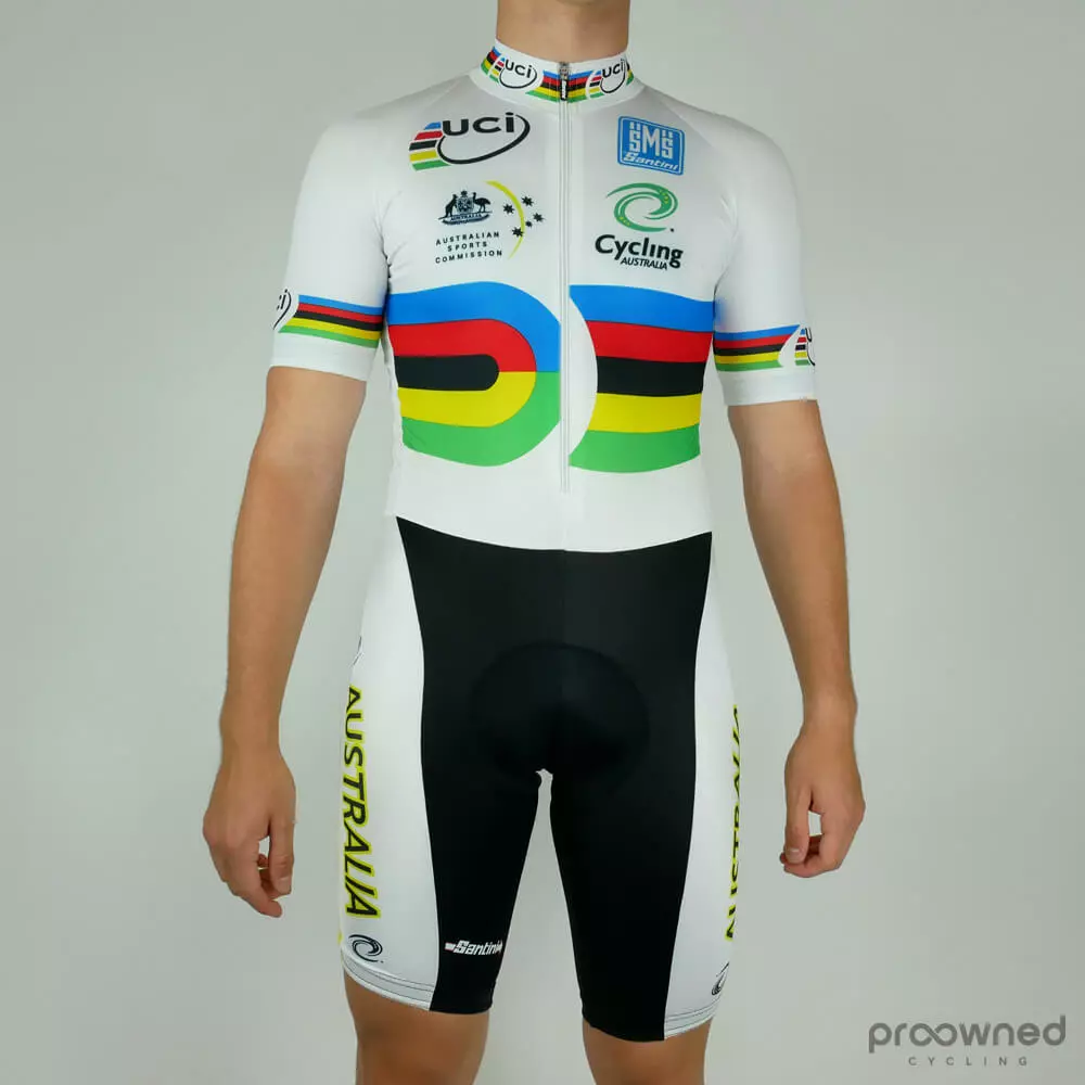 It is Santini’s top model, which is custom made for the Australian National Team. This means that this is a very high-quality skinsuit. The material is breathable, which ensures good comfort even when the body sweats.