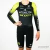 The Skinsuits tight fit is made for pure speed. The skinsuit is made by the Italian brand Santini, which is known for providing top quality clothing for all seasons. Skinsuits are specifically made for use during Time Trials, as they are designed to sit extremely tight on the body and with an absolute minimum amount of stitches, zippers and no pockets in an attempt to eliminate drag as much as absolutely possible.