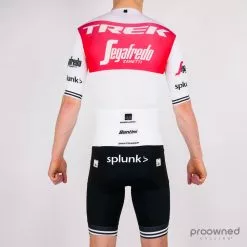 Brand new short sleeve skinsuit from Santini. This skinsuit with pad comes directly from the world tour team Trek-Segafredo and was made for the 2019 season.