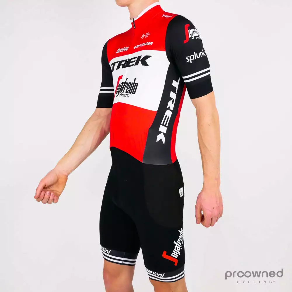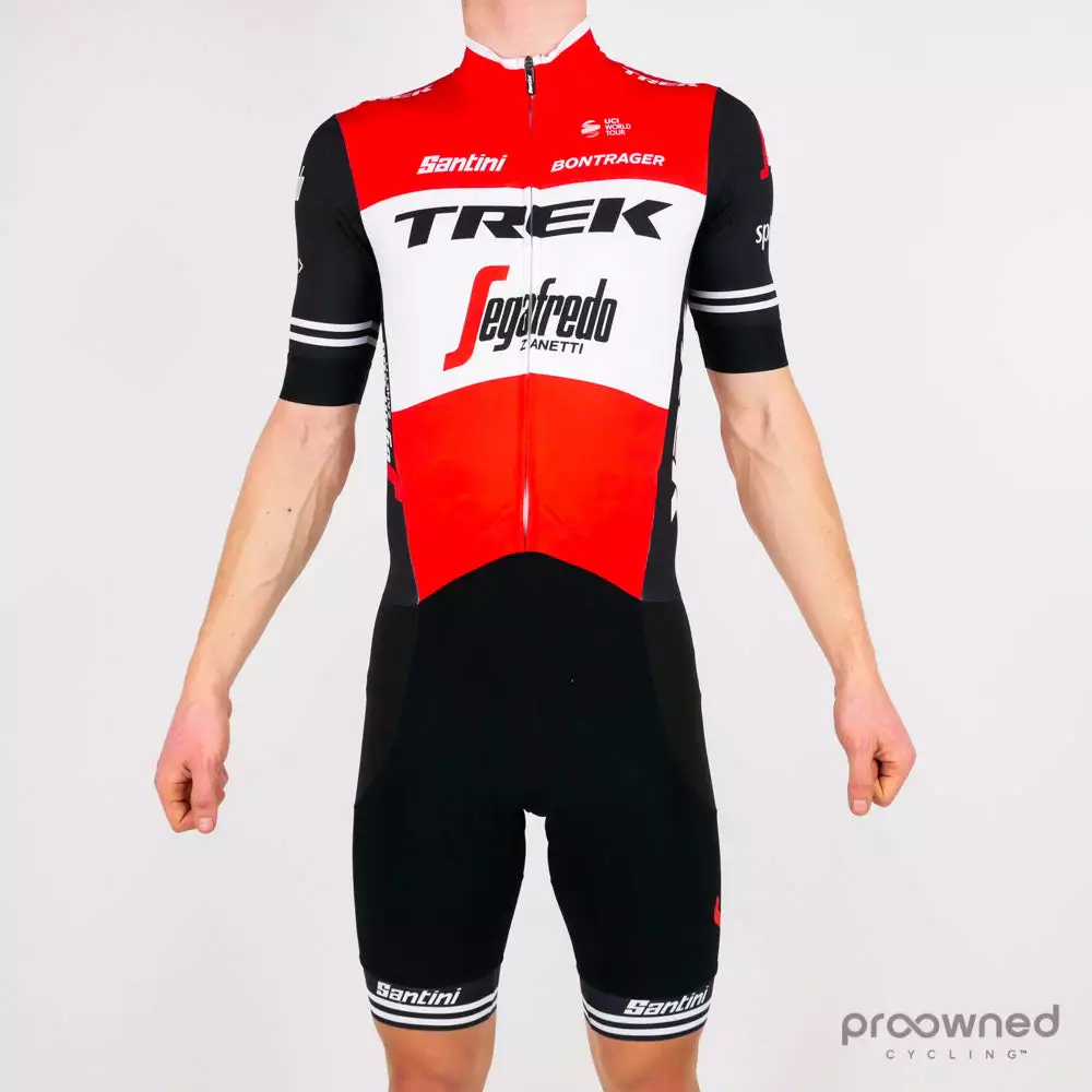 Brand new Santini short sleeve speed suit. Made for the World Tour Trek-Segafredo team and was for the 2019 season.