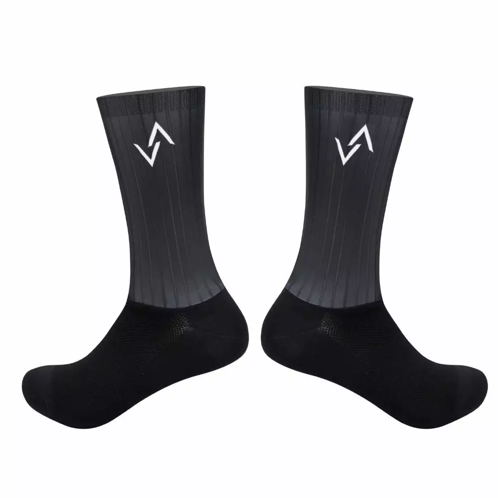 Sharp Black Aero Socks are built to UCI-compliant length and provide an aerodynamic edge! The fabric combination of nylon and spandex allows air to remain on the leg for as long as feasible. The seam is hidden under the leg, where it will not interfere with airflow as it exits the legs.