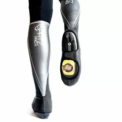 Designed with intelligent water-dispersing thermal lining, hydrophobic outer layer, heat welded and taped seams, and stretch velcro fastener behind the cleat. Comes with a wrinkle-free cut.